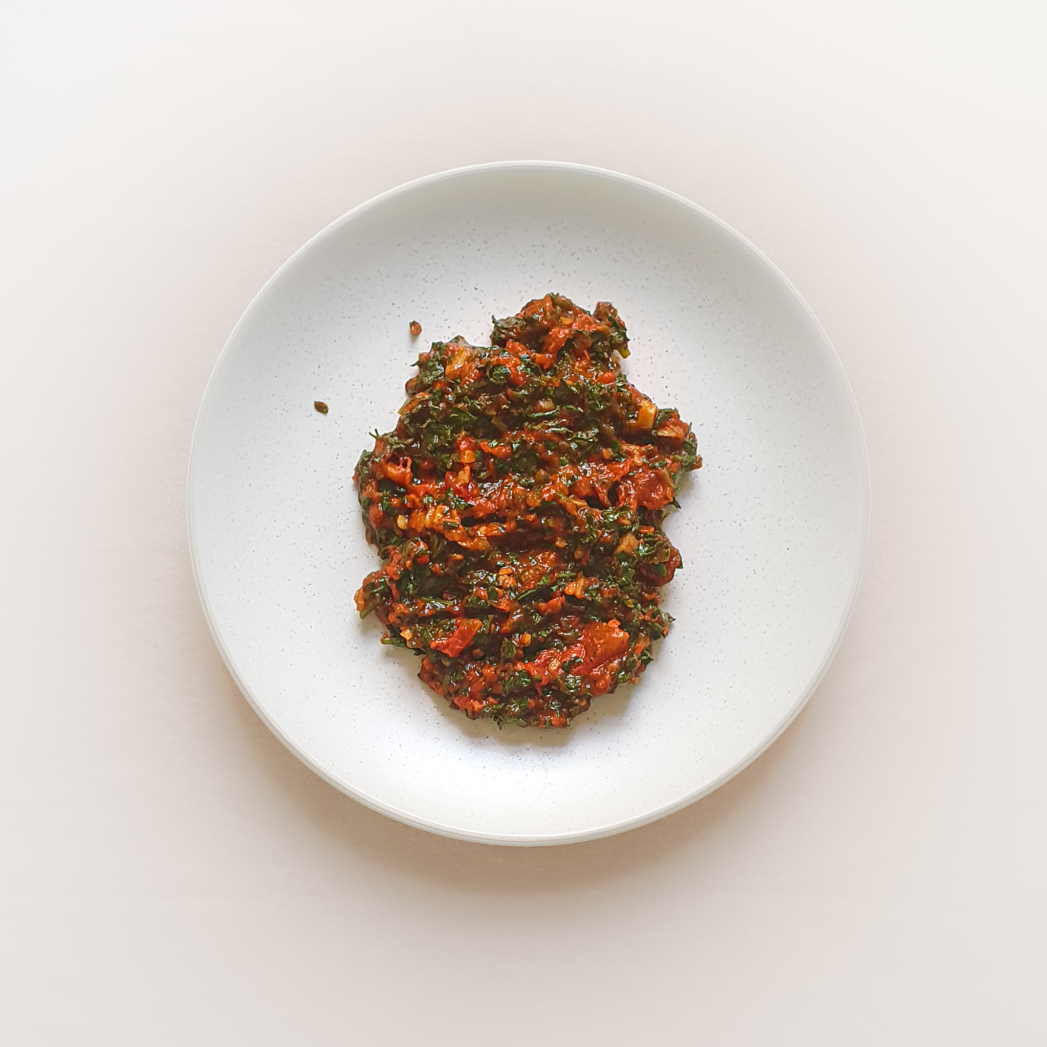 – מטבוחת עגבניות, כוסברה וחריף (קונפי)